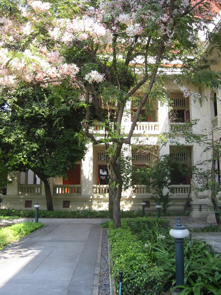 文学部旧校舎は中央の回廊を挟んで、タイ語集中課程のオフィスをはじめ、経理部や各事務や自習室が入っている建物(中央写真向かって左)と、迎賓館のような使われ方をしている建物(中央写真向かって右)の二つ。因みに右側の建物がチュラロンコーン大学最古の建物です。