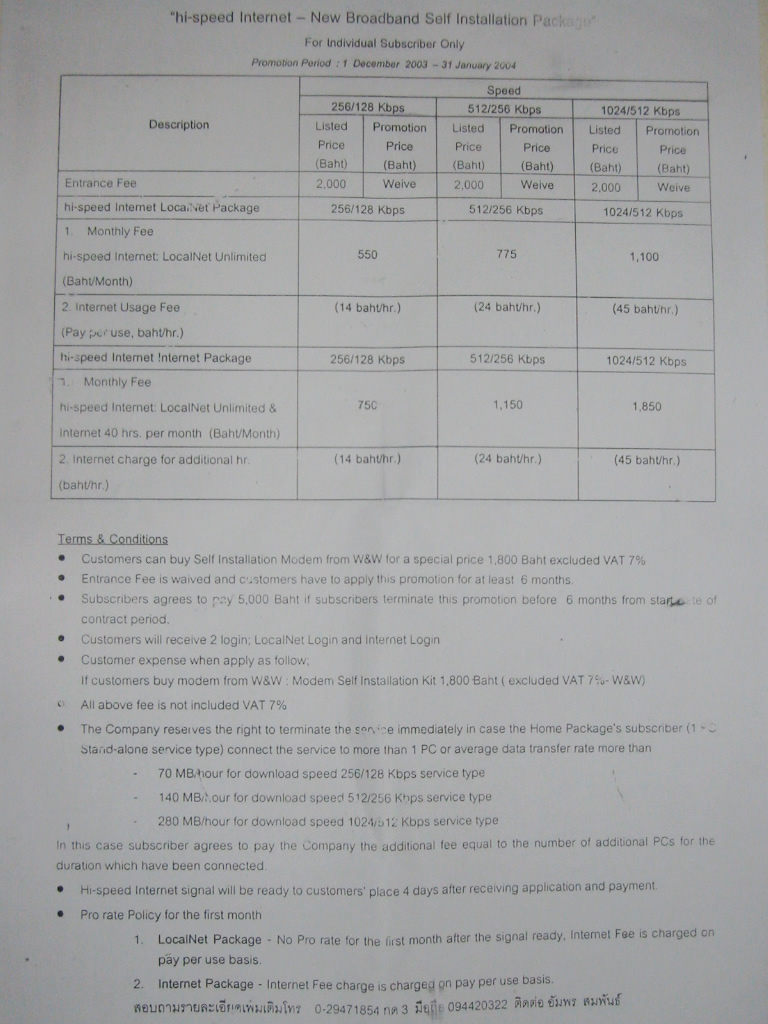 今回はキャンペーン中ということで、一時間無料のアカウントを貰うことができたものの、まだまだここタイでは、無線LANの無料環境は整いそうにない。隣のスターバックスでは、一時間150Bと五時間600Bの無線LANアカウントを売っていた。