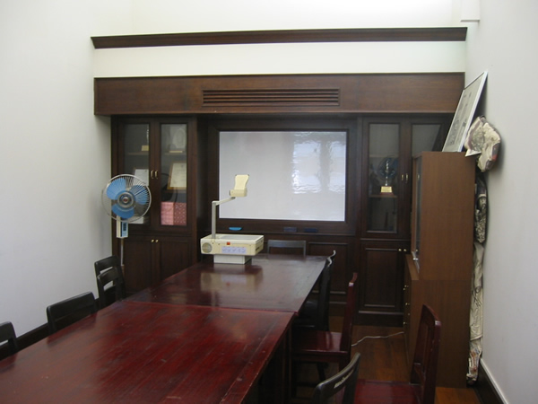 新しい教室は今までの校舎の向かい、タイ語集中課程のオフィスが入っている寺院の様な旧校舎の中。教室の中はこんな感じです(写真)。2番目の写真に写っている謎の女性が私達の授業を見守ります。