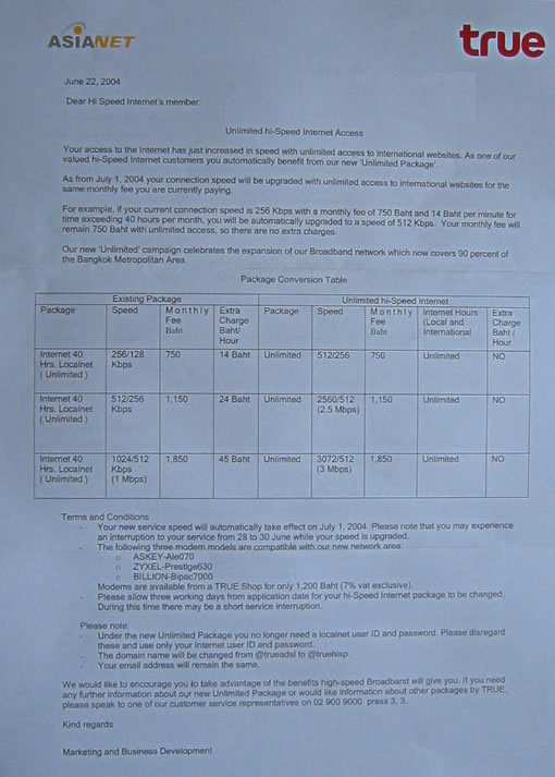 7/1より、ASIA NETのADSLが値下げとのことです。