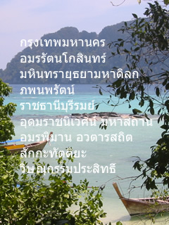 クルンテープマハーナコーンアモーンラッタナコーシンマヒンタラーユッタヤーマハーディロッカポップノッパラットラーチャターニーブリーロムウドムラーチャニウェートマハーサターンアモーラピマーンアワターンサティットサッカタティヤウィッサヌカムプラシット