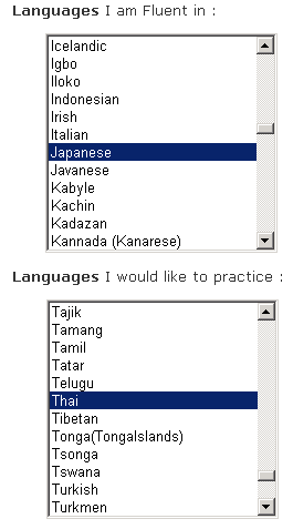 Jyveというサイトが似たようなサービスをしていました。自分の「第一言語」と「学びたい言語」を登録して、条件に合った人を検索してくれます(画像は登録画面)。ただ、16日現在、タイ語を話す人も、タイ語を学びたい人もいないようです......