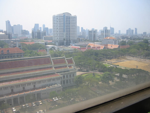各階に備えられた便器(小)は3つ。ここでポイントなのは、一番左側に立つことだ。すると、眼下にはチュラ大の歴史的建造物や、創造技術研究所、果てはサラデーン駅周辺の高層ビルが広がる。そこからのそれはまるで××に立って××をするような感覚を伴うのだ。