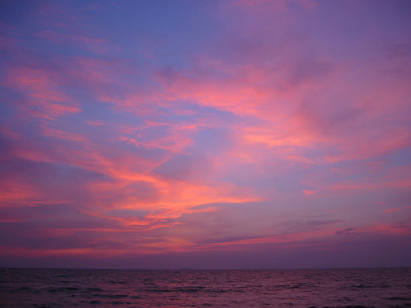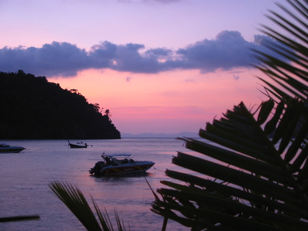 (写真8)ピピ島最後の日の夕方。第二の入り江で思いがけず綺麗な夕日。